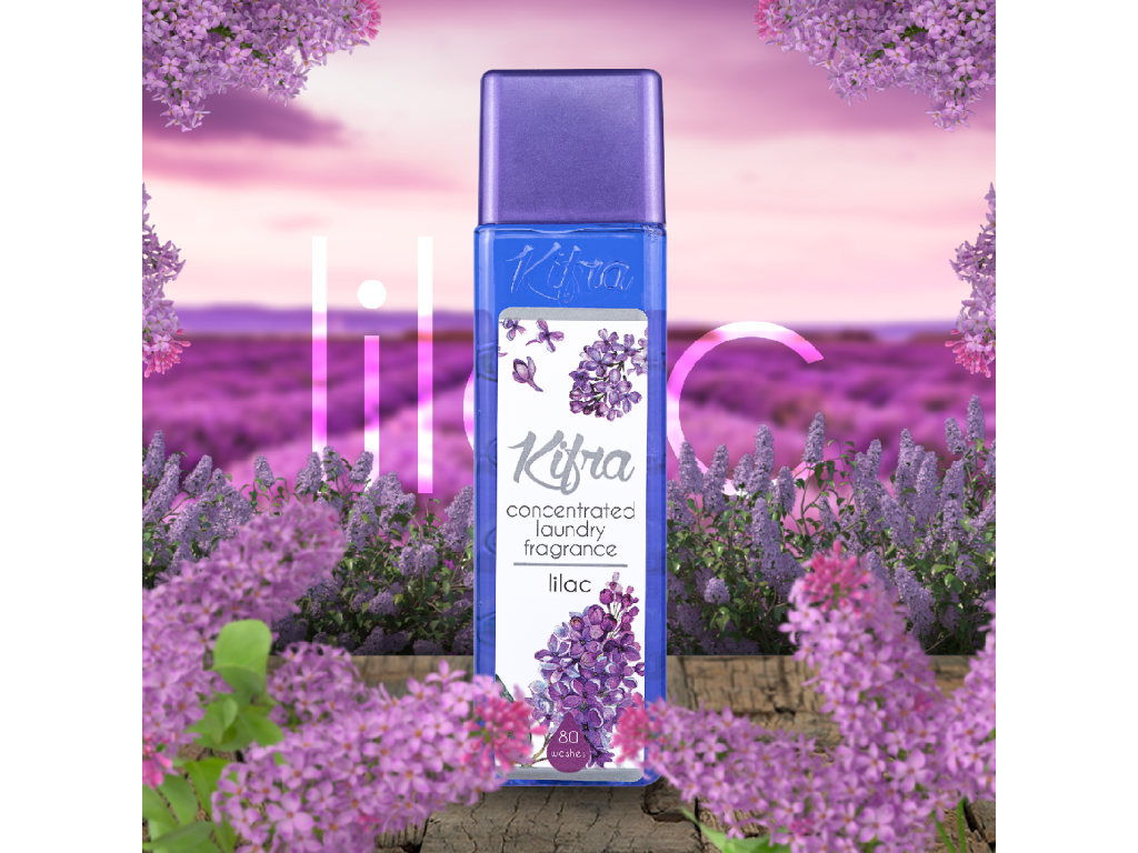 Kifra Lilac è un profumo concentrato per bucato con una fragranza intensa, magica e inconfondibile di lillà – come una delicata nuvola profumata che ti avvolge ad ogni lavaggio.