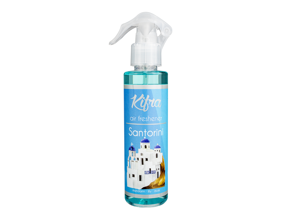 Kifra Santorini è una fragranza per ambienti che vi trasporta in un mondo fatto di sole, leggerezza e sogni senza fine.